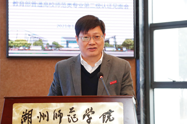 蒋云良向与会专家介绍了学校办学历史、办学特色以及近年来教育教学改革成效。他表示,我校高度重视师范类专业认证工作,全校上下已经形成了“重视专业认证、关心专业教学、服务人才培养”的浓厚氛围。学校将积极配合专家组工作,认真完成各项考查认证,同时以专业认证为契机,进一步解放思想,加强专业内涵建设,完善专业质量保障与评估机制,努力办出高质量、有特色的师范专业,推动学校加快创建高水平“湖州师范大学”。