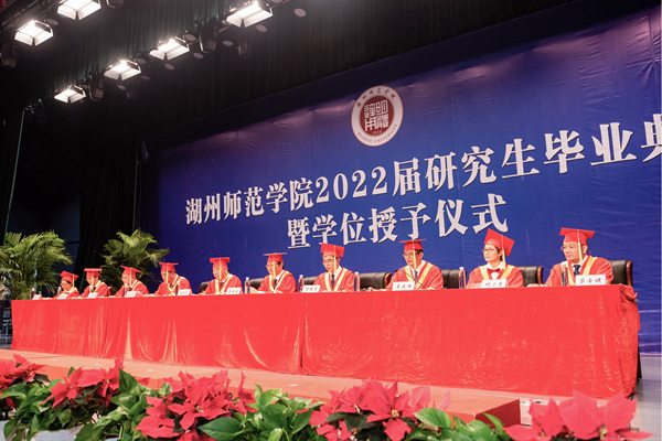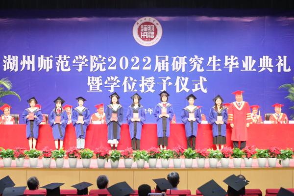 校党委副书记丁敢真宣读2022届硕士研究生毕业名单和2022届浙江省优秀毕业生名单,校领导班子为2022届研究生颁发毕业证书。