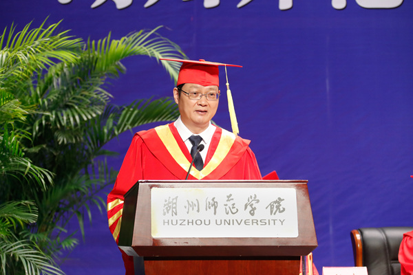 校长蒋云良在讲话中表示,身处伟大时代的同学们注定是特殊的、不平凡的一代,期望毕业生们能心怀“国之大者”,做矢志报国的奋斗者,以青春为墨、时间为笔,书写自身使命担当,以报国之行践爱国之志,能奋力“走在前列”,做追求卓越的践行者,时刻牢记“干在实处、走在前列、勇立潮头”的浙江精神,传承发扬“明体达用”校训和“艰苦奋斗、自强不息、包容求新、博雅笃行”的师院精神。希望同学们永葆“创新活力”,做求真求实的创新者。期待国际研究生以在湖师的所学所得,为自己的国家作出贡献。