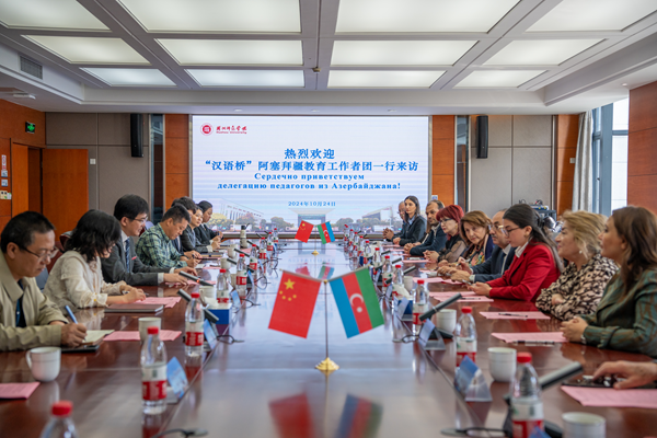 10月24日,我校举行“汉语桥”阿塞拜疆教育工作者代表团来访欢迎仪式。以阿塞拜疆语言大学行政副校长武加·梅赫拉博夫、巴库音乐学院科技副校长古勒纳兹·阿卜杜拉扎达、阿塞拜疆建筑大学设计系主任助理伊尔卡纳·萨马多娃为代表的阿塞拜疆教育工作者代表团,我校副校长李庆峰、相关部门及二级学院负责人共同参加仪式。