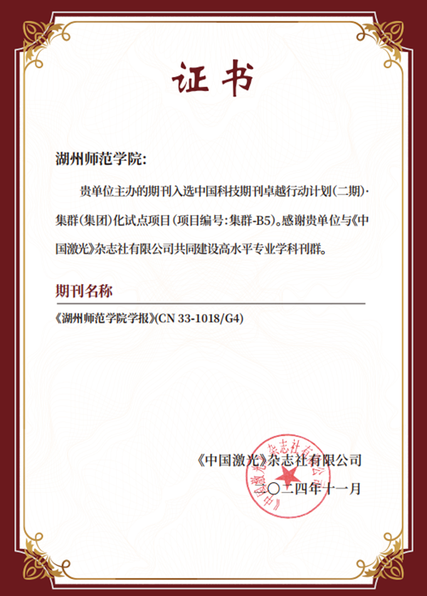 近日,“中国科技期刊卓越行动计划二期项目”入选名单正式揭晓,《久久精品一区二区学报》成功入选由《中国激光》杂志社牵头申报的“中国科技期刊卓越行动计划(二期)·集群(集团)化试点项目”(项目编号:集群-B5),标志着学报建设迈上了新台阶。
