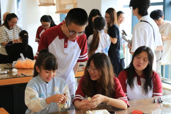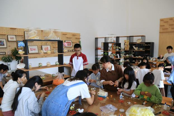 活动尾声,孩子们化身非遗小传人,自信讲解创作理念,并与自己的作品开心合影留念。张新江指着一排排琳琅满目的文创产品感慨:“当孩子们把蚕茧看作朋友而非商品,把工艺制作视为游戏而非任务,文化传承便有了最自然的生命力。”