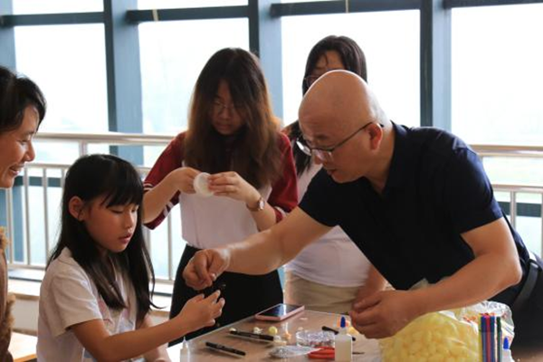 在蚕茧文创制作环节,张新江及助教团队现场演示了蚕茧挂坠的制作秘籍。茧壳经彩笔描绘,瞬间幻化成彩虹色系。孩子们手持小剪刀,在助教老师指导下大胆创作:有的将金黄蚕茧剪出条纹,粘上小翅膀,再绘出圆鼓鼓的肚子,做成蜜蜂;有的给雪白茧壳画上胡须,粘上铃铛,做成小猫咪;甚至有小朋友做出了小老虎、小黄人等许多栩栩如生的奇趣作品。